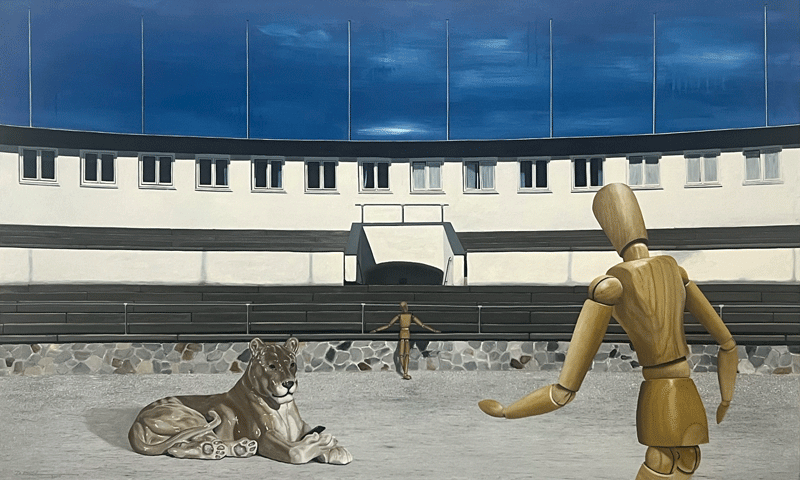 Daniel in der Löwengrube, Öl auf Leinwand, 110 x 180 cm, 2025